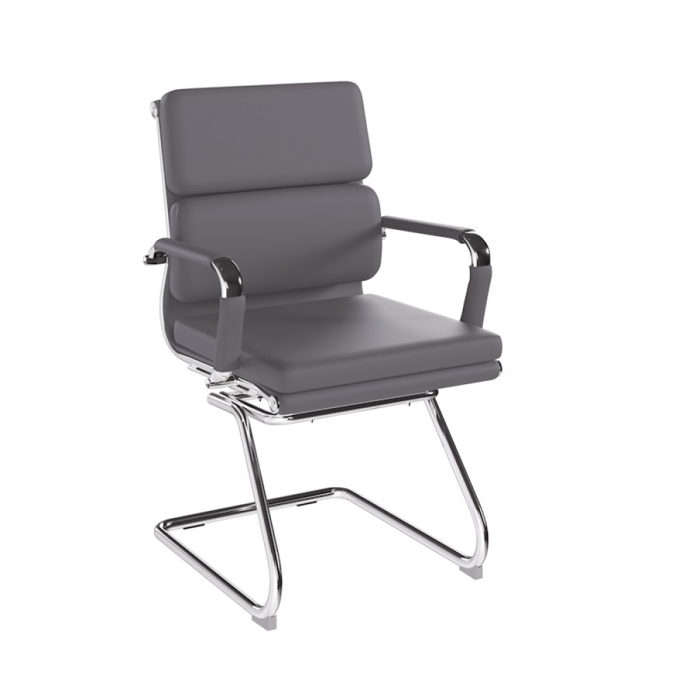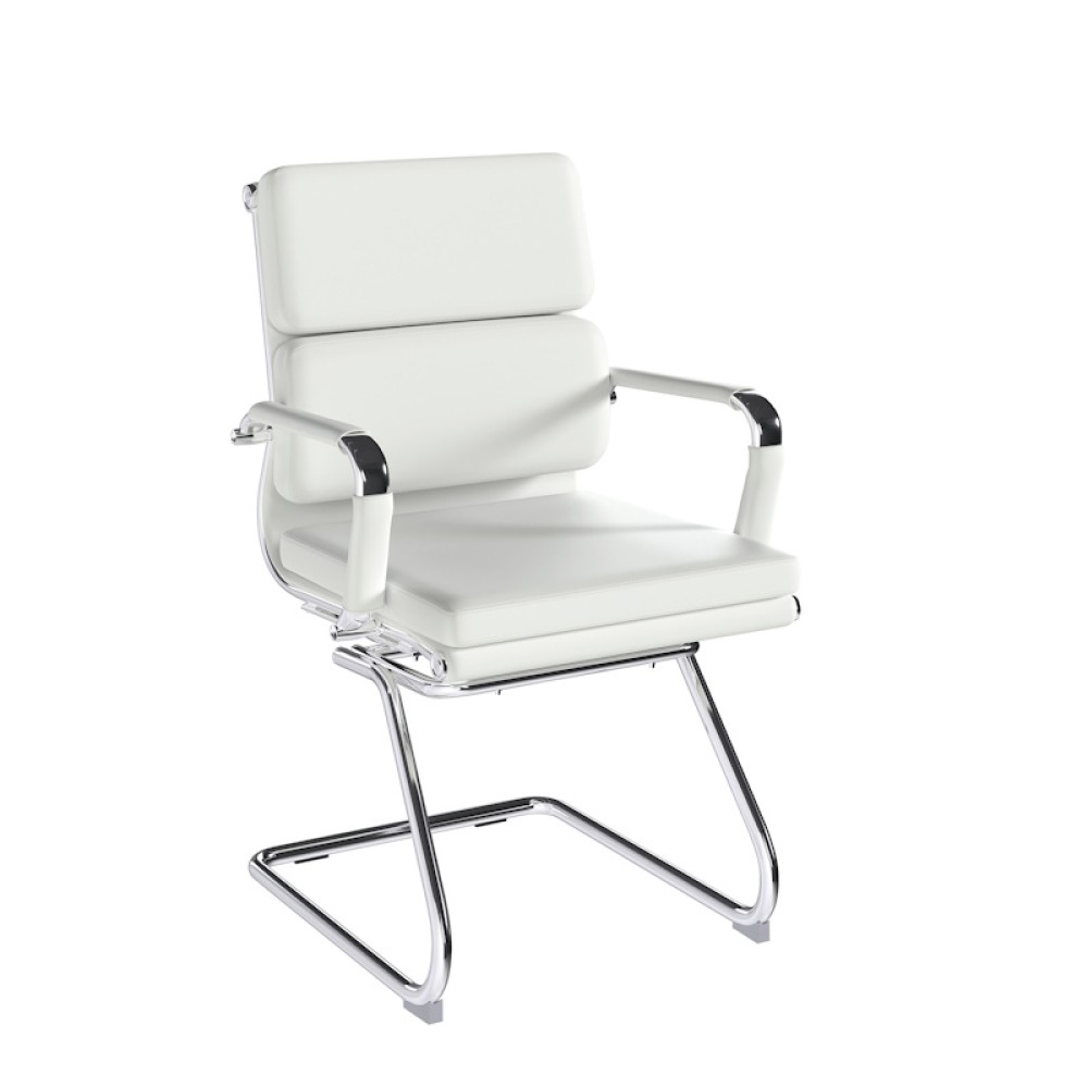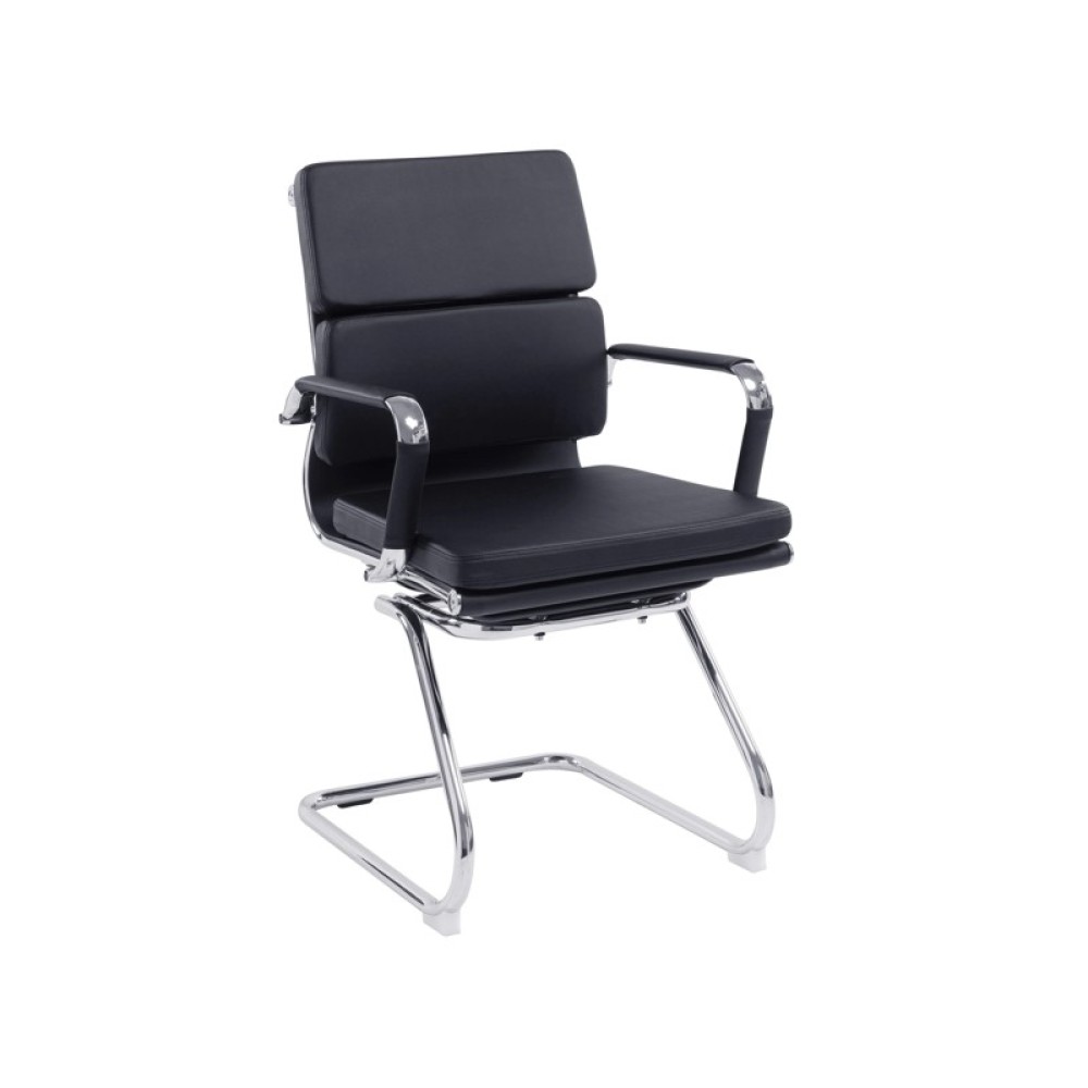 This medium back designer visitor chair is upholstered in plush bonded leather and is suitable for both a workplace or home office environment. Offering detailed stitching with a bold twin panel back cushion design, it features a strong single piece chrome cantilever frame and is finished with complementing integral chrome arms with bonded leather sleeves.