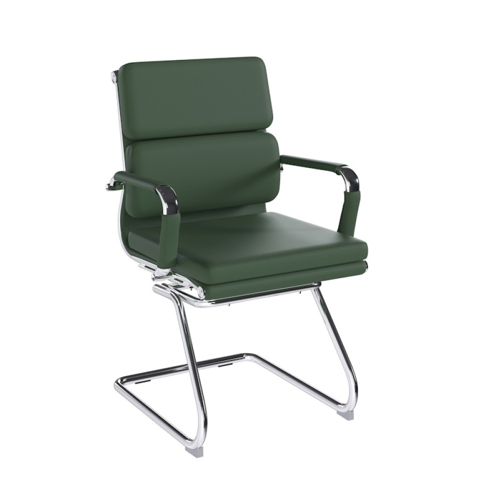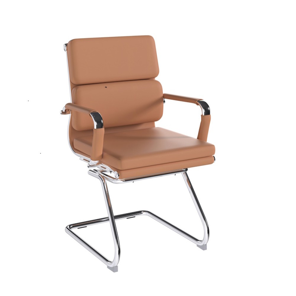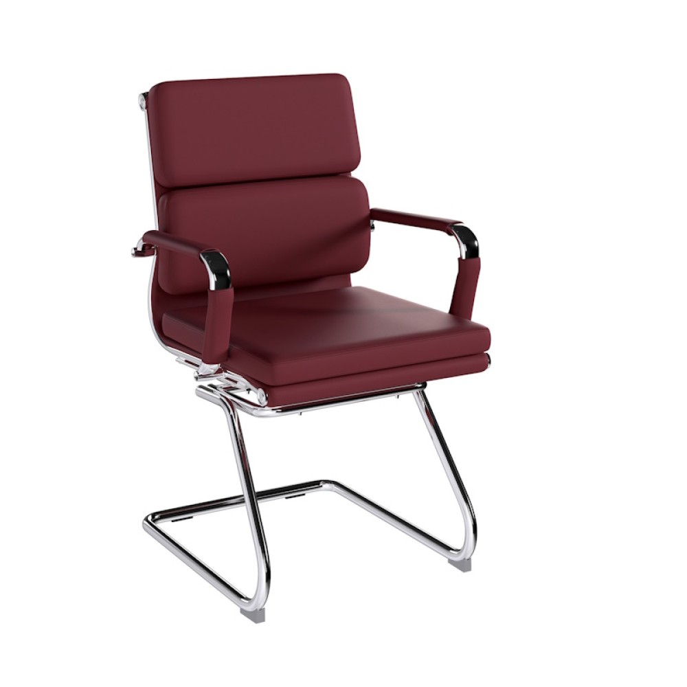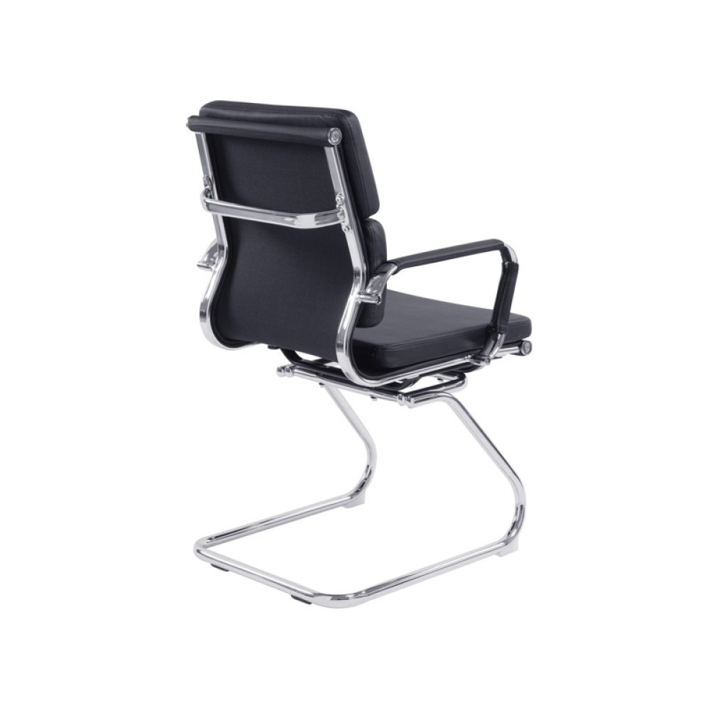 This medium back designer visitor chair is upholstered in plush bonded leather and is suitable for both a workplace or home office environment. Offering detailed stitching with a bold twin panel back cushion design, it features a strong single piece chrome cantilever frame and is finished with complementing integral chrome arms with bonded leather sleeves.