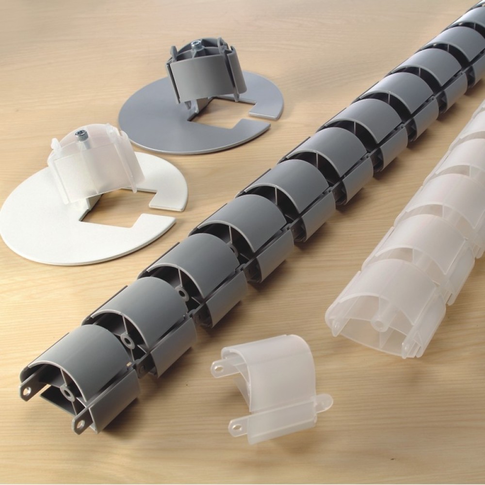 Our low priced cable management spines offer a simple, effective way of tidying up cables around the desk. Cable spines allow you to run power and data from floor level to desk top tidily. These economy cable spines are basket easy to fit with its unique rotating desk fixing