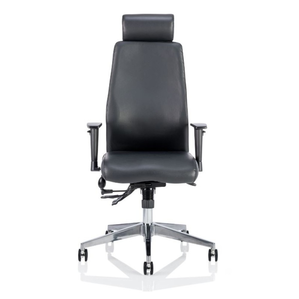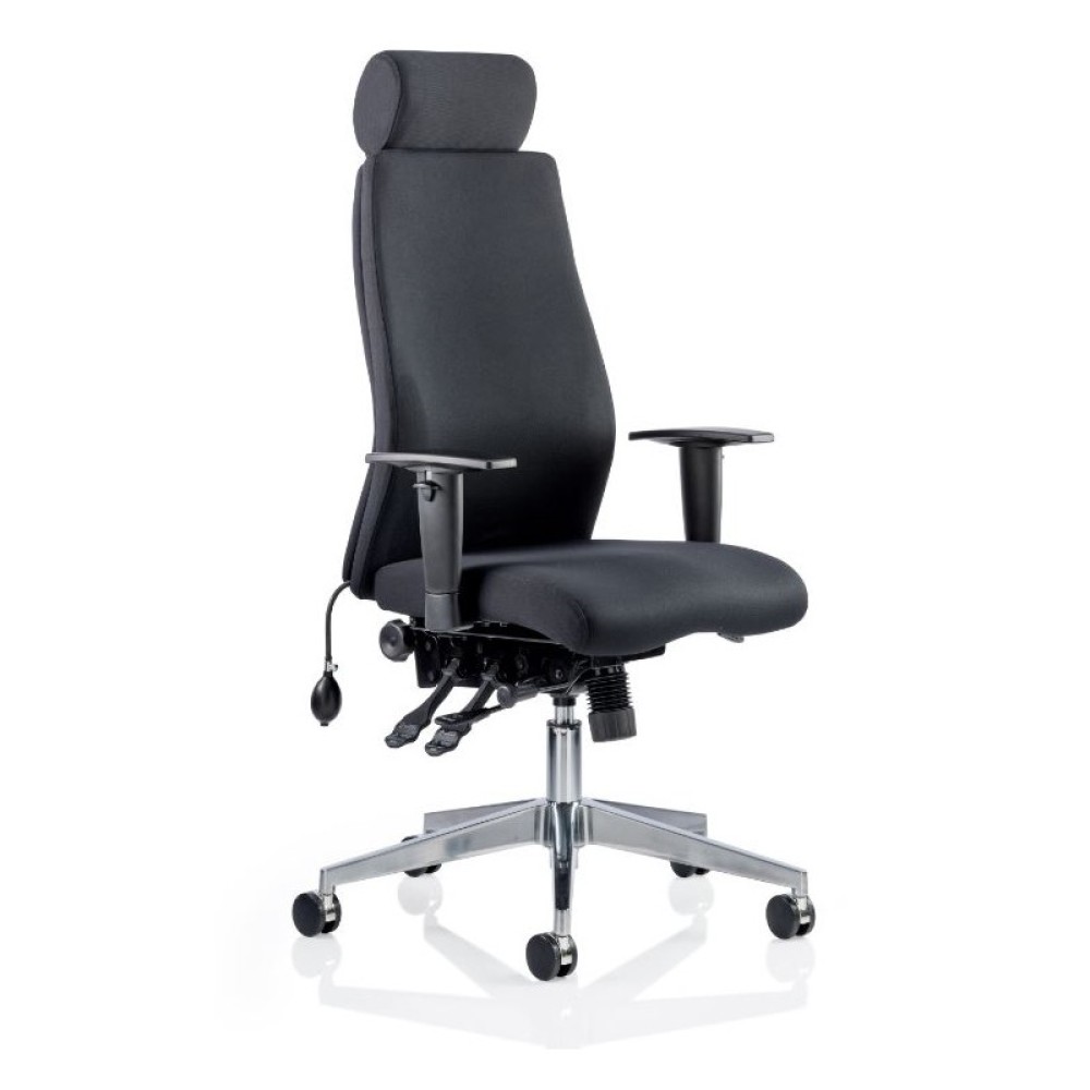 The Onyx chair from Dynamic Office Seating is a fresh, contemporary office chair that offers a range of inspired features such as height adjustable headrest and height adjustable arms, independent back and seat tilt and contoured foam seat and back for extra support and comfort. An added feature is the inflatable lumbar support to really get your back fully supported