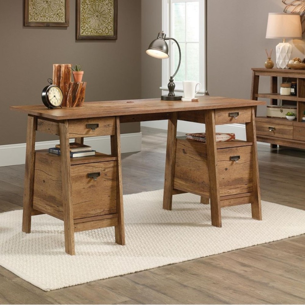 The beautifully crafted trestle style executive desk in chalked chestnut or vintage oak finish for the home office or study.