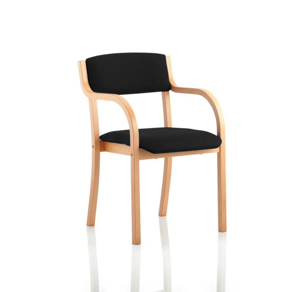 A beech wooden frame with generous seat and arms as standard in black fabric. Ideal for many functions.