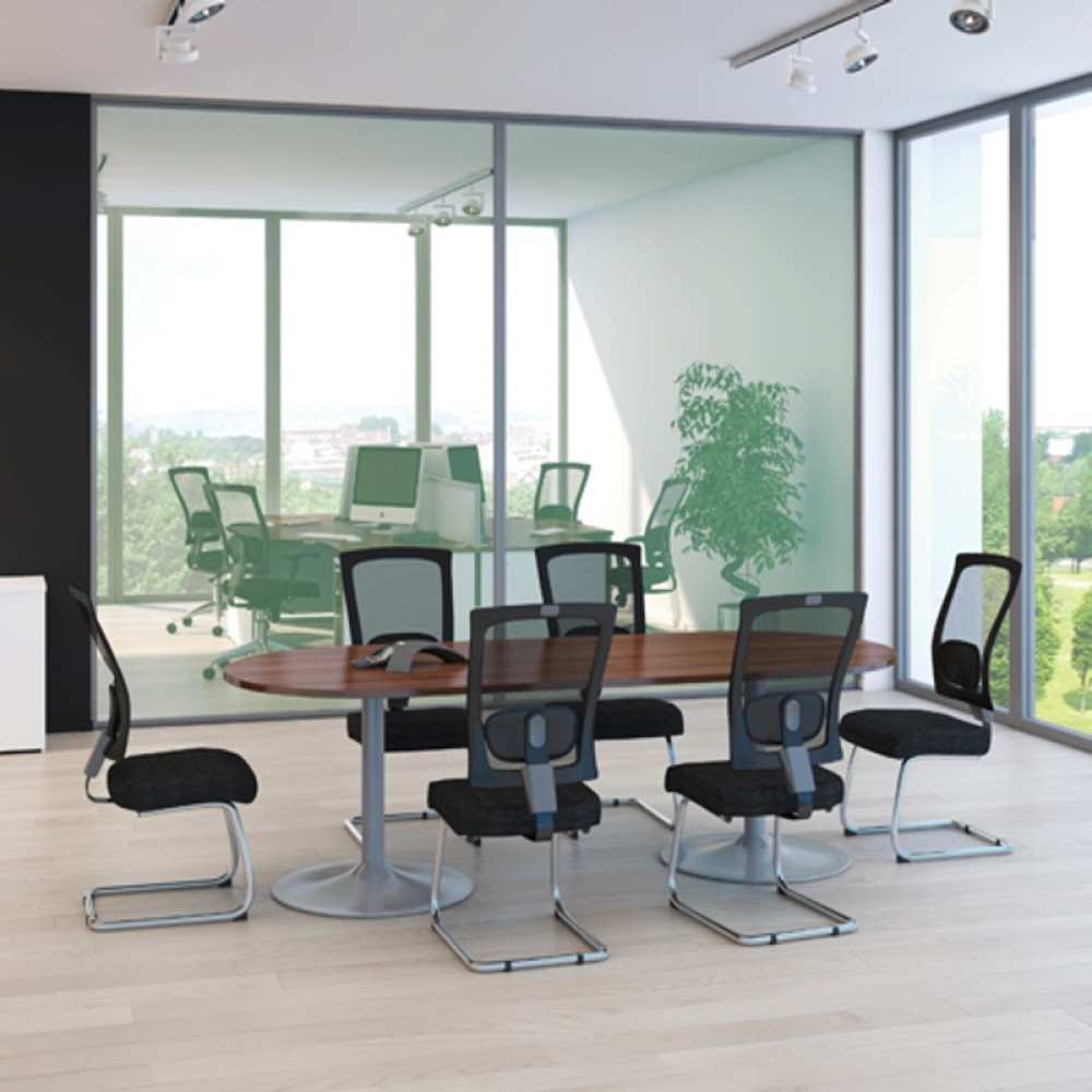 A modern solution for any boardroom this range of tables uses silver finished steel trumpet bases. Select from individual boardroom tables or configure your own specification. Available in a choice of five colour finishes. Free delivery from stock