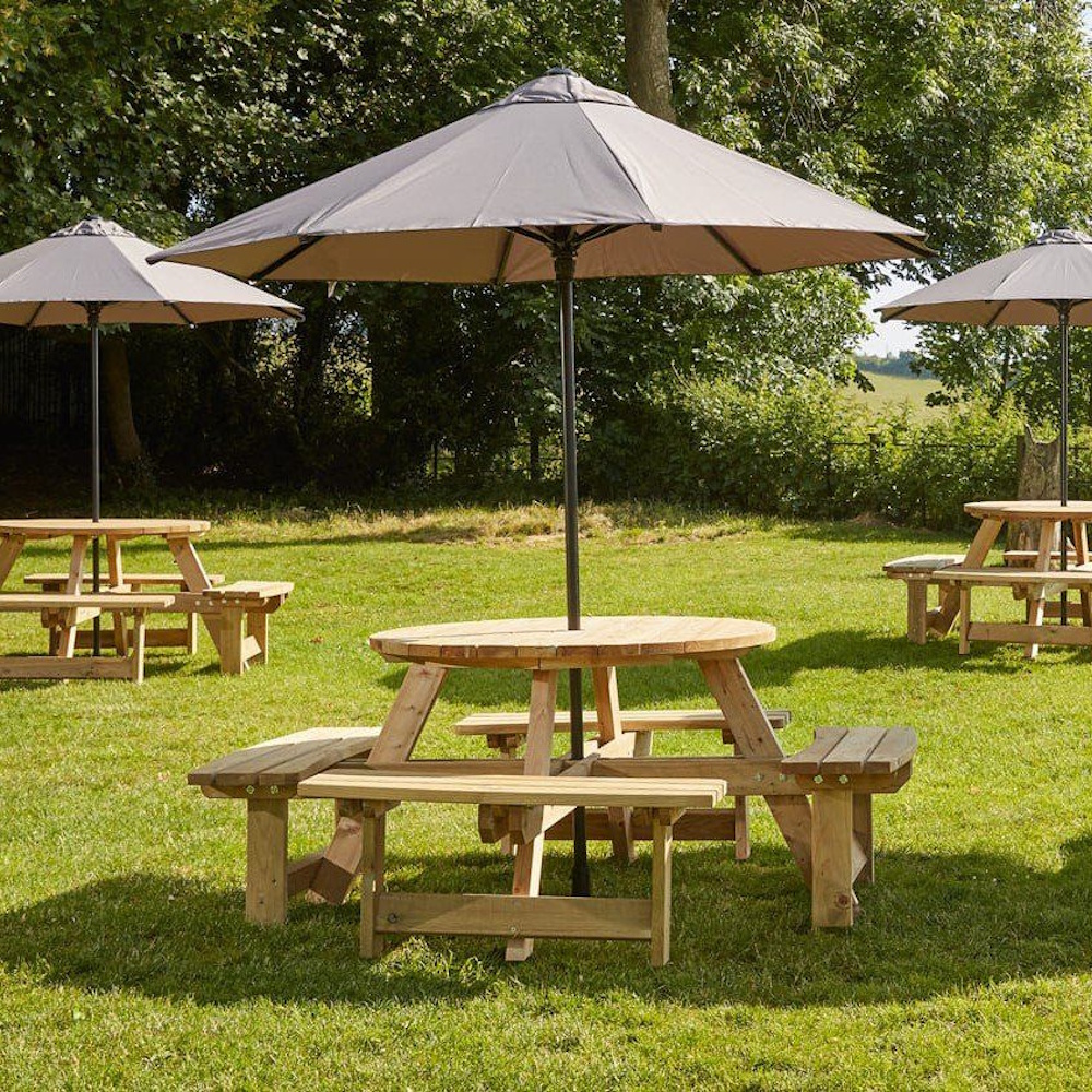 This very sturdy picnic 8 seater round picnic table is made from timber and is built to withstand years of use